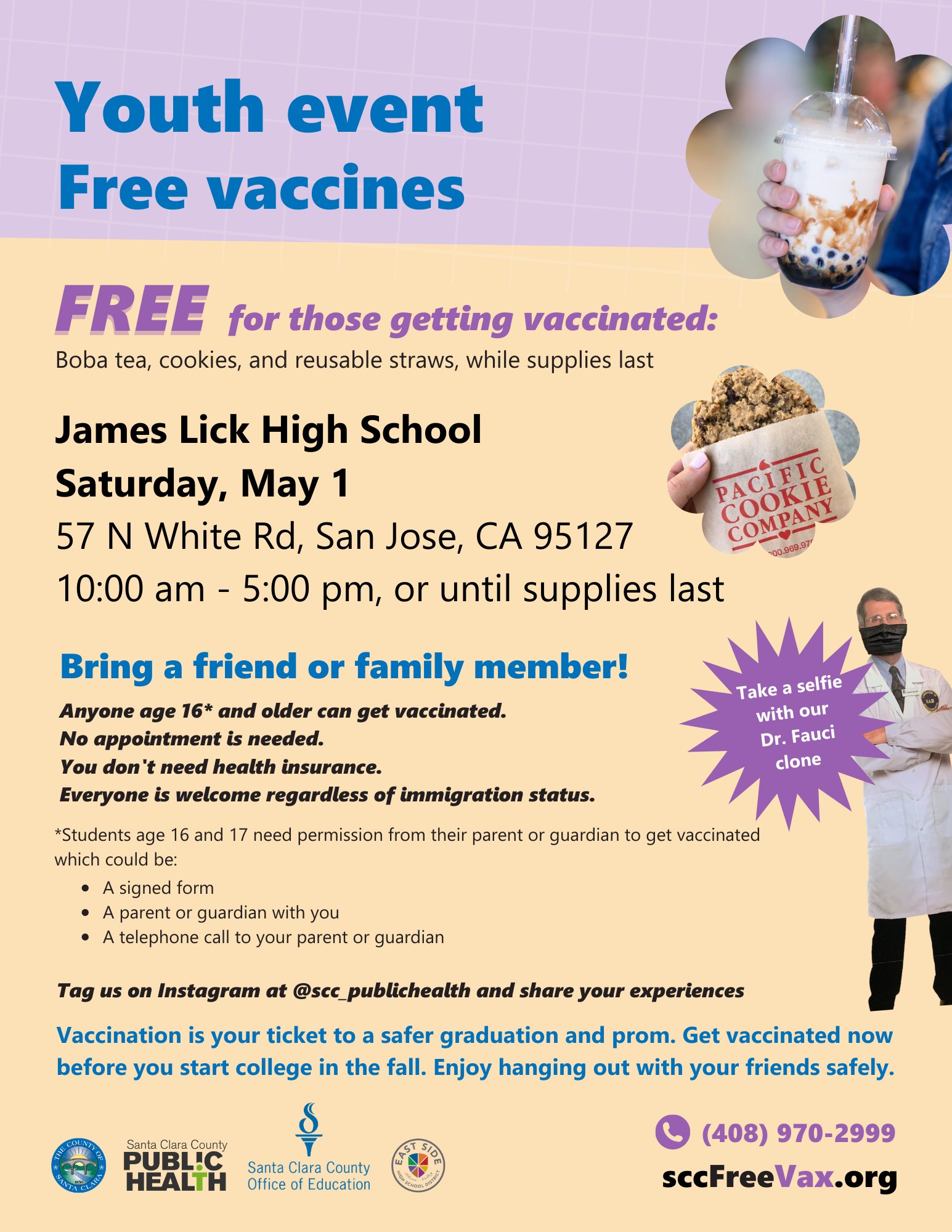 Santa Clara County On Twitter Free Boba And Other Goodies To Go With Your Free Vaccine Sat 5 1 10am 5pm Bring Friends Family Age 16 To James Lick High To Get Protected
